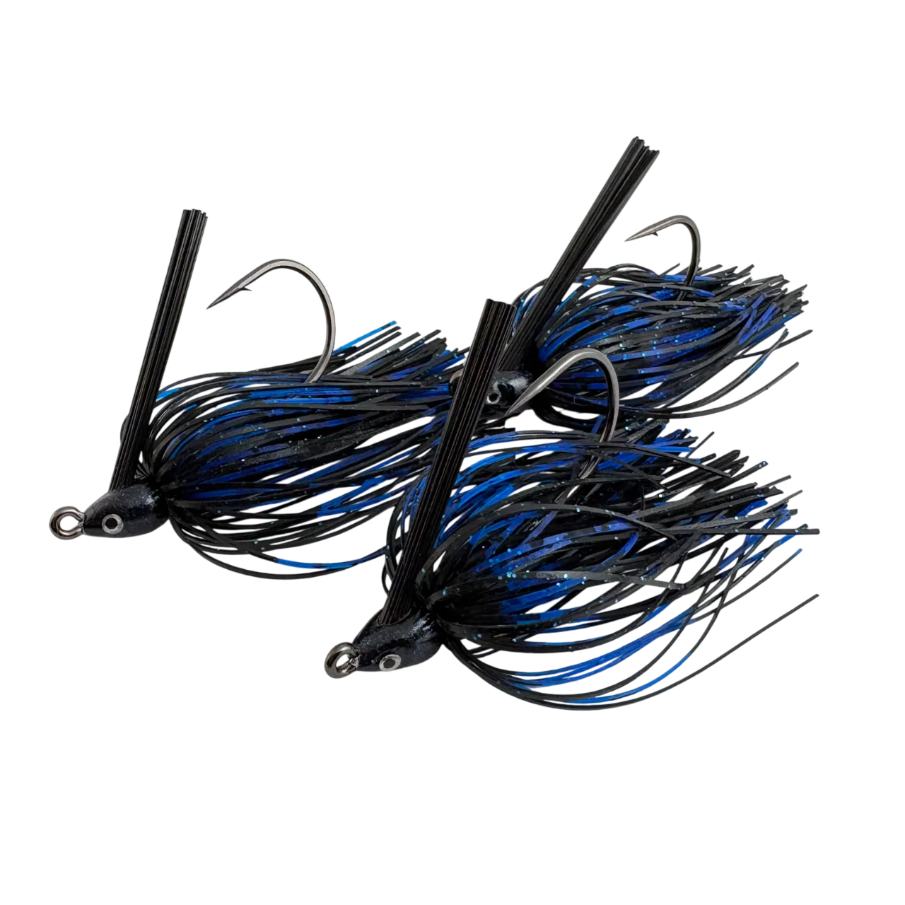 • These custom swim jigs feature a hand-tied skirt — no rubber bands to slip and mess up your skirt or rot and fall off